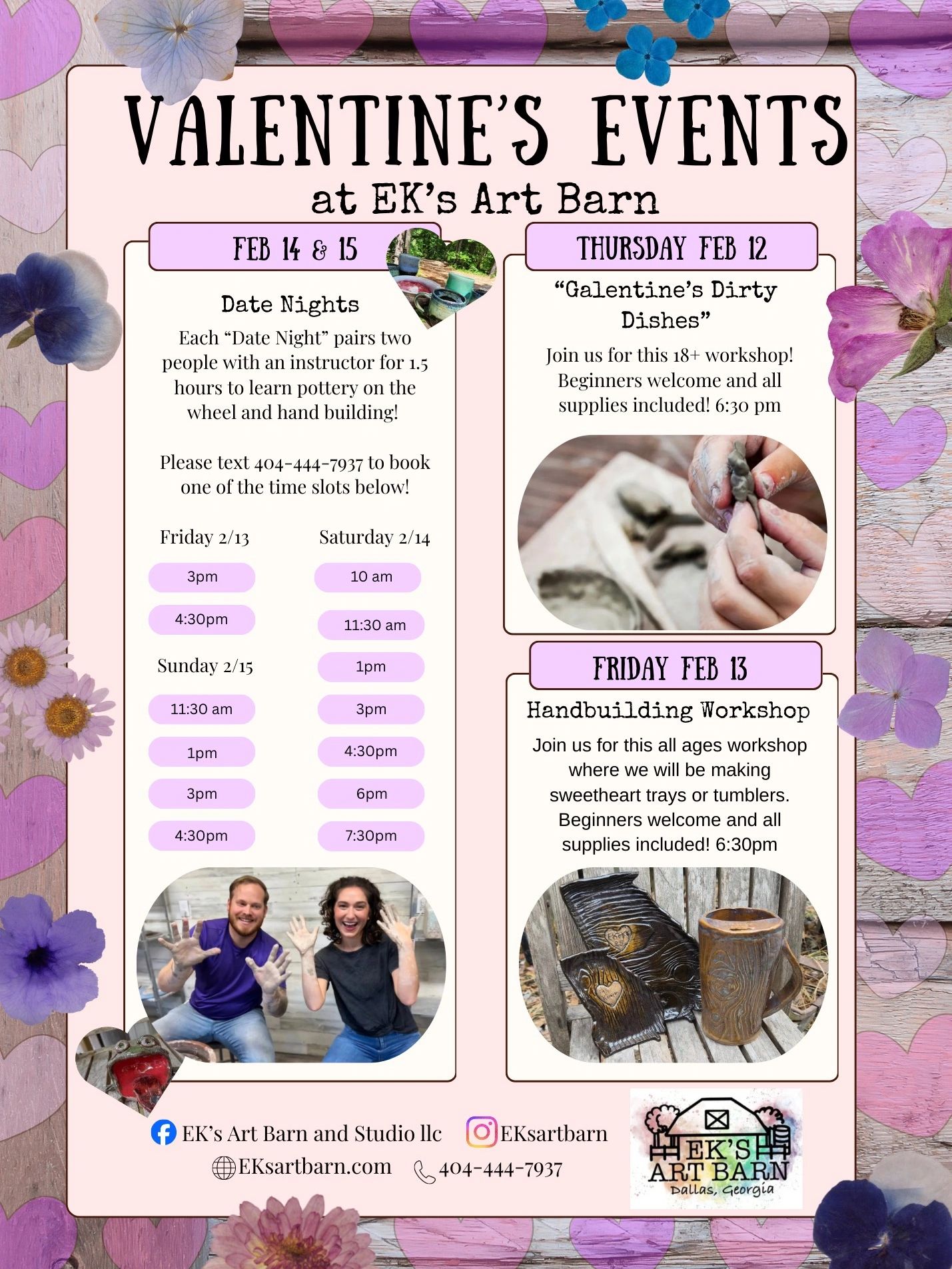 It's that time of year again! We are so excited to have you guys back out for our Valentine events! Please call 404-444-7937 for the most up to date information on availability! Don't wait to book, spots are filling up fast!
